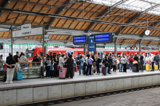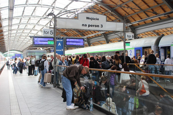 Was die Sache aber zu einem wahren Erlebnis macht, ist der Zugverkehr in den Hallen. Die Züge sind, von wenigen Ausnahmen abgesehen, ausgesprochen pünktlich. Und sie sind alle ausnahmslos voll. Richtig voll. Wobei das Gedränge bei Fernzügen zwar mitunter geradezu beängstigend wirkt, sich aber schnell auflöst: In allen Fernzügen der PKP besteht Reservierungspflicht – und die Wagen halten immer da, wo sie hingehören, die Reihung wird zudem mehrfach per Lautsprecher angekündigt. „Heute in umgekehrter Wagenreihung“, „heute ohne Wagen sowieso“, das gab es am Besuchstag und gibt es wohl auch an anderen Tagen nicht.