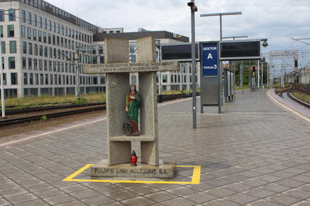 Vielleicht liegt es ja auch an ihr. Ein schöner Brauch ist es, die Heilige Katharina, die Schutzheilige der Eisenbahn und der Eisenbahner, auf vielen Stationen nicht nur aufzustellen, sondern auch zu betreuen. So gesehen auch in Jelenia Gora und in Boleslawiec. Betreut wird sie hier von der PLK, der Infrastrukturgesellschaft der polnischen Eisenbahn.