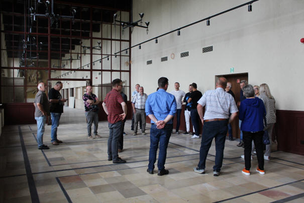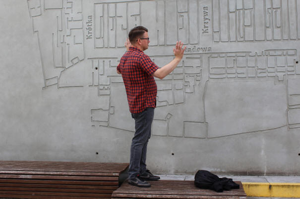 Der Bürgermeister von Olsztynek höchstpersönlich erläutert die „Kunst am Bau“, hier einen alten Stadtplan.