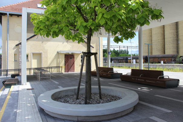 … wenn man es will, lässt sich ein Wartebereich für Bahn- und Buskunden auch so gestalten. Man beachte die Sauberkeit. Nichts ist verschmiert oder besprüht. Stolz ist man darauf, dass Papst Johannes Paul II. hier einmal als Priester umgestiegen ist und ein Telegramm erhielt, welches seine Wahl zum Bischof von Krakow enthielt. Natürlich gibt es hierzu ein Denkmal. Die Konturen des früheren Bahnhofs-kiosks mussten auf Geheiß des Denkmalschutzes angedeutet bleiben.