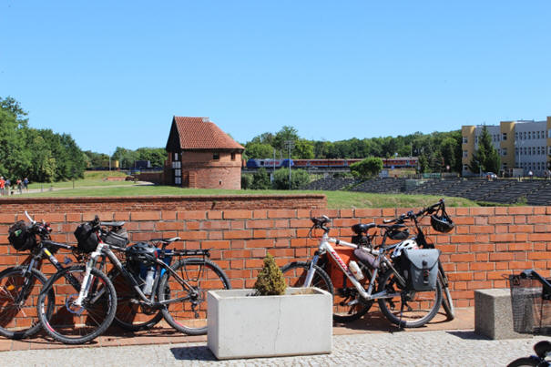 Szenenwechsel: Die weltberühmte Marienburg liegt äußerst günstig zur Bahn. Im Hintergrund ein Güterzug und ein Nahverkehrszug auf der Strecke Malbork – Gdansk.