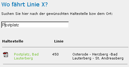 verbliebenen Linien 450 Osterode - Herzberg - Bad Lauterberg - St. Andreasberg,
