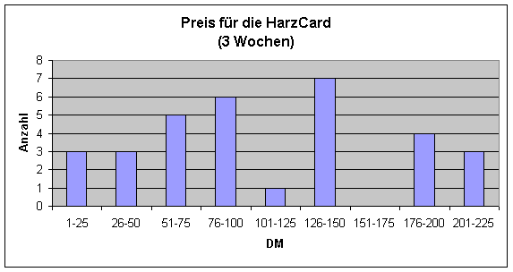 Bei unserer durchgeführten Umfrage, was eine HarzCard kosten darf, wurden 32 verwertbare Aussagen abgegeben. Allen Teilnehmern möchten wir hiermit danken.