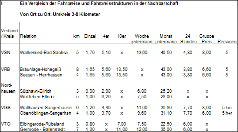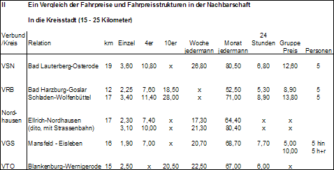 c) In den Ausgaben des Kreises Osterode fehlen wichtige Hinweise wie der auf den Übergangstarif Harz, der gerade für Touristen von einigem Interesse wäre.