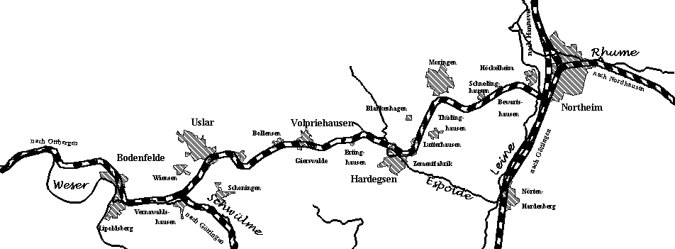 Bodenfelde und von dort nach Bad Karlshafen führen, wo Anschluss nach Westfalen