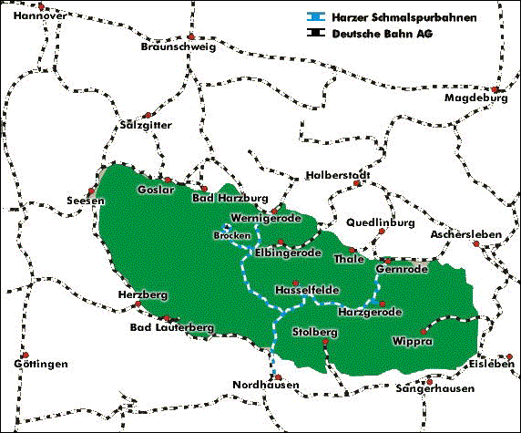 Die Anreise ist für Tagestouristen und auch Langzeiturlauber mit der Bahn gut zu realisieren, wobei einige durchgehende Züge aus den Ballungsräumen -wie in anderen Regionen üblich- auch in den Harz verkehren müssen.
