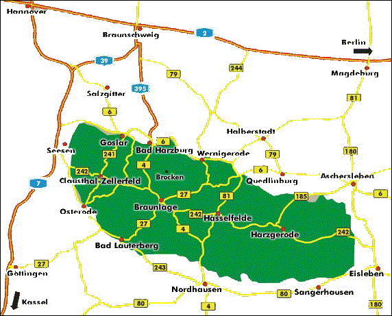 ist der Zugang über Osterode, Herzberg, Scharzfeld, Bad Sachsa (Neuhof),