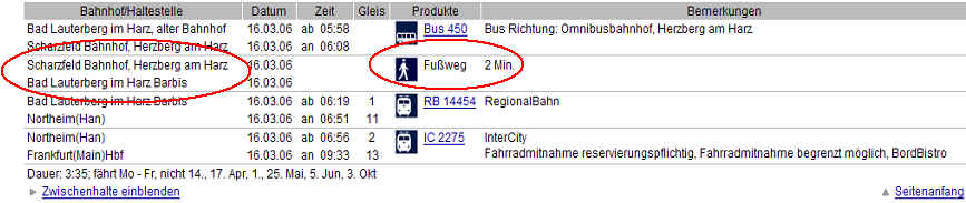 die Linie 450) und Braunlage angeboten. Durch die Zuganschlüsse in Herzberg aus