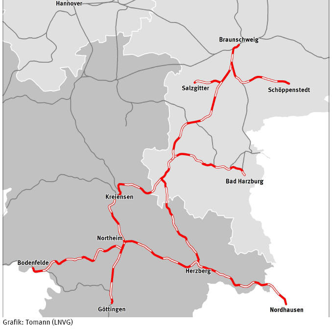 Anbindung des Südharzes – genauer der Landkreise Osterode am Harz und Nordhausen