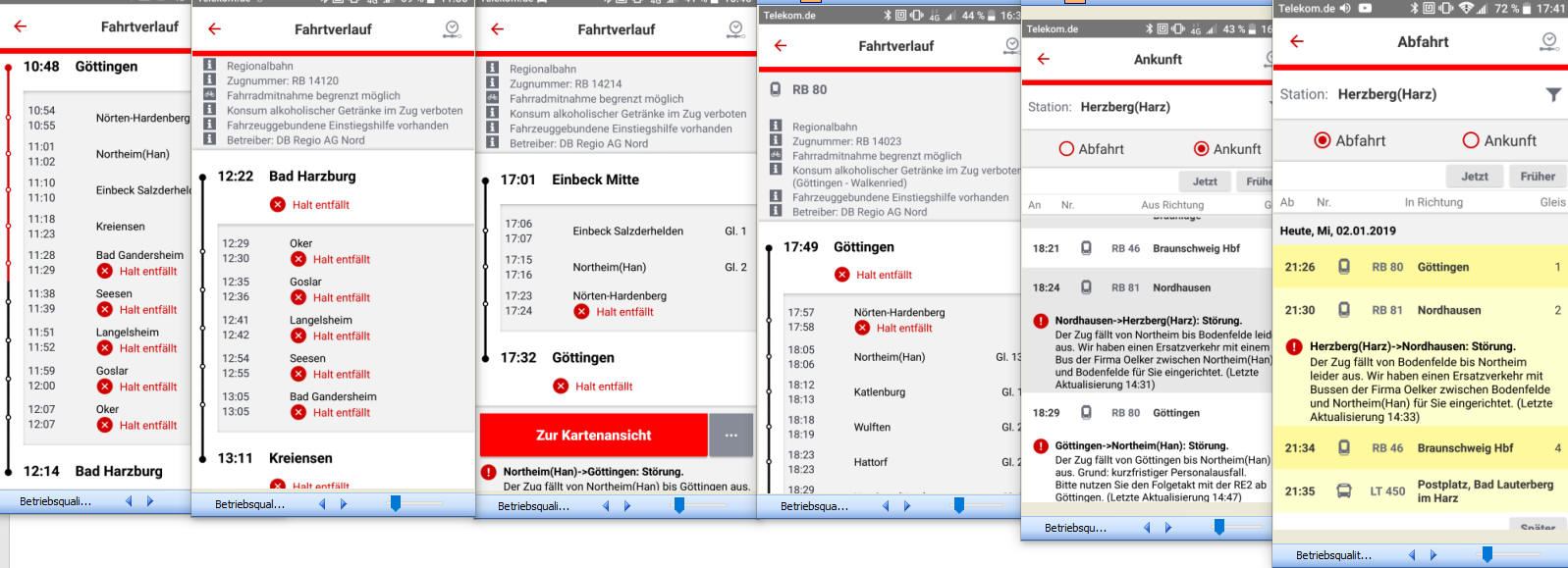 eingezogene Unzuverlässigkeit des Bahnverkehrs im Südharz und im Solling die