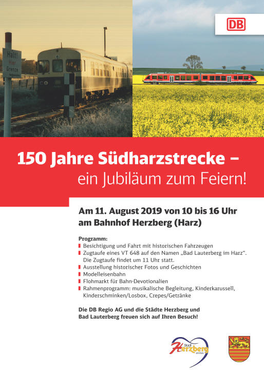 Harz: Initiative stellt Printversion "Harz-Kursbuch 2020" (HKB) zum Download bereit +++ weiterer Fernsehbericht zum Geisterzug auf MDR +++ Fahrplanwechsel: Schienenverbindung Südharz - Göttingen ist nach Abschluss der Bauarbeiten an der Neubaustrecke wieder stündlich möglich - VSN erweitertet Busangebot im Raum Osterode / Herzberg (Stand: 15.12.2019)